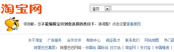 答:會,如果您編輯的寶貝類目在限制范圍內,系統會提醒您無法更改。提醒內容為:“您不能編輯該商品到選擇的類目下,查看詳情”