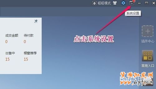 成功登陸之后,點擊右上角的系統設置按鈕,哈哈,這個隱藏得確實有得深。大家也可以點擊阿里旺旺模式去設置,也可以同步的。