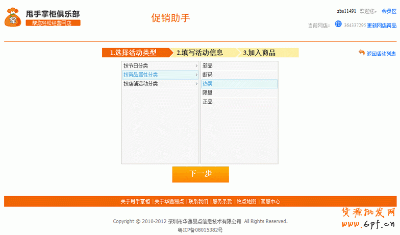 按照您店鋪中的促銷活動的經(jīng)營情況,選擇一個適合您促銷活動的類型,如下圖