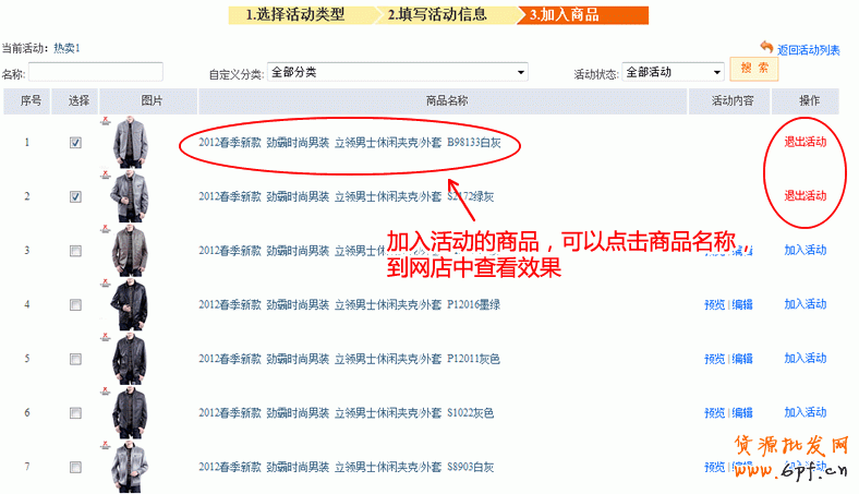 添加商品后,商品的操作狀態(tài)變成"退出活動"。