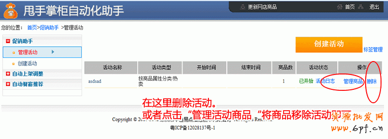 (注意:由于拍拍api的不穩(wěn)定,如果一次活動中包含商品過多將可能導(dǎo)致刪除活動后商品主圖歡迎有誤,因此不建議刪除活動而是等待活動過期后數(shù)據(jù)自動還原)