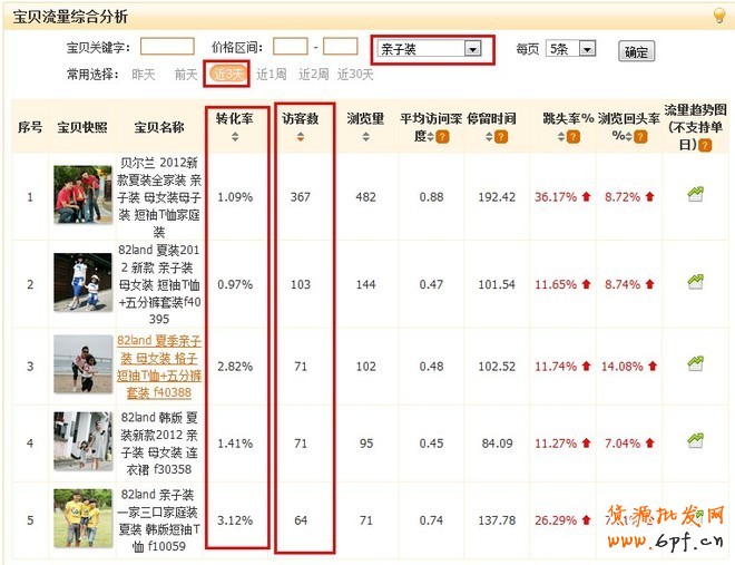 親子類目不如連衣裙類目火爆,可以選擇轉化率比較高的幾款寶貝進行測試。