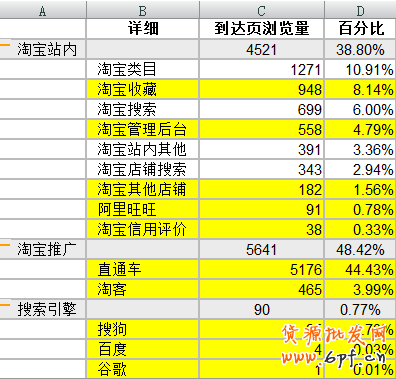 2. 來店鋪里面的人,64.79%的人都是精準流量來的,如下圖中,黃色部分的數據基本都是精準流量。