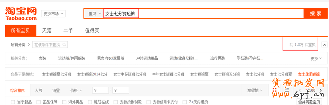 2、有時候我們可能發(fā)現(xiàn)一些黃金關(guān)鍵詞,就是搜索非常大,轉(zhuǎn)化也不錯,但是寶貝數(shù)較少這樣的關(guān)鍵詞,但是往往這樣的關(guān)鍵詞在數(shù)據(jù)魔方里面是緊密關(guān)鍵在一起的,而你可能發(fā)現(xiàn)這個關(guān)鍵詞中的一些字,我們的標題里面已經(jīng)有了。這個時候你又想把這個關(guān)鍵詞加到你的標題,但是又不想影響現(xiàn)在標題的權(quán)重,不想做大的改動,這個時候你可以把你找到的黃金關(guān)鍵詞復(fù)制到淘寶搜索,看看展現(xiàn)出來的結(jié)果,看看是否存在緊密關(guān)聯(lián)的現(xiàn)象。當我們搜索:女士短褲七分褲。
