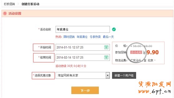 在打折促銷欄目創建新打折活動,里面有活動名稱,比如年底清倉,冬季熱賣開始時間,結束時間,優惠對象