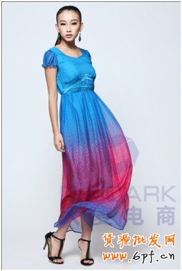 藍色是2014潮流色系。藍色代表著一切萬物的純凈,也有著冷靜、理智與美麗,具有強烈的春夏季節性特點。從產品本身來看,這條長裙屬于春夏款,且產品主色調是藍色;春夏的代表顏色,首先讓人聯想到的也是藍色和綠色,因此確定海報主色調為藍色,局部過渡綠色。讓調性更為生動。