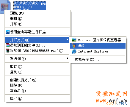第一步:將需要壓縮圖片用畫圖工具打開。(選擇需要壓縮的圖片,點擊鼠標右鍵,在“打開方式”中選擇“畫圖”即可):