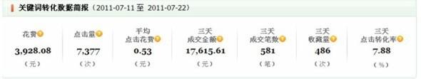 直通車是把一個沉默無語的產物,推成明星的性價比最好的方法,我們首要剖析一些次搶手詞匯,然后放在恰當?shù)漠a物下面,經(jīng)過設置多個長尾詞匯,漸漸把要推的爆款預熱,再共同店內運動。我們的均勻點擊單價只要0.52元,大大低于同業(yè)的評價程度,并且直通車的轉化率高于全店的均勻值