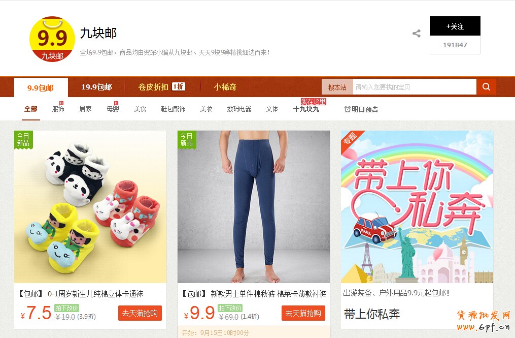 淘寶u站9塊郵的首頁主要包括有9.9包郵、19.9包郵、卷皮折扣以及小稀奇四個欄目,其中涵蓋的商品的種類也非常多,比如,服飾、居家、母嬰、美食、鞋包配飾、美妝、數碼電器等多種類目,同時在淘寶關注該u站的人數高達19萬以上。