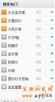 要想查詢我們店鋪寶貝的熱搜關(guān)鍵詞的熱搜程度,可以點擊后面的更多,進(jìn)入寶貝的熱搜詞語排行榜,選擇自己網(wǎng)店產(chǎn)品的類目之后可以在左側(cè)看到我們的寶貝熱搜關(guān)鍵詞的排行榜了。如下圖: