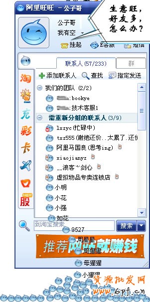 靚點(diǎn):主帳號(hào)、子帳號(hào)分工合作,效率更高,開(kāi)店輕松自如。將子帳號(hào)分發(fā)給您的家人和朋友,同學(xué)等:老同學(xué)認(rèn)識(shí)的人多,平時(shí)在線時(shí)間長(zhǎng),負(fù)責(zé)銷售;老婆心細(xì),對(duì)什么都很認(rèn)真,負(fù)責(zé)客服;老弟在上大學(xué),學(xué)計(jì)算機(jī)的,負(fù)責(zé)技術(shù)支持;Hahaha~~~當(dāng)“老板兒”的感覺(jué)多好! |