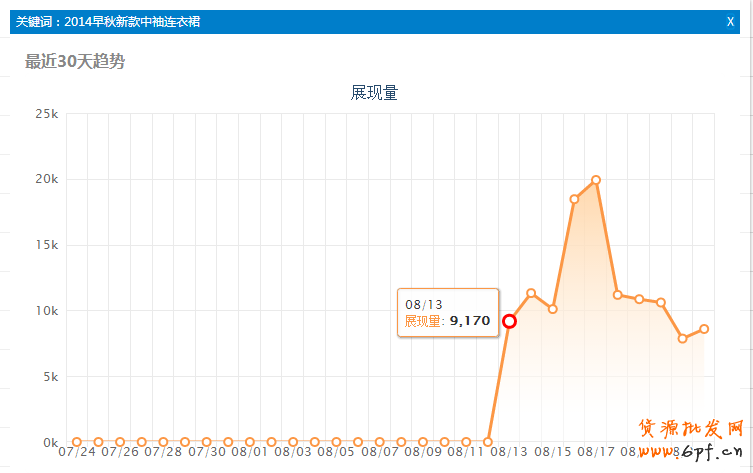 接下來的神祠是“清涼襯衫”,從7月30號開始搜索指數(shù)飛漲,展現(xiàn)量穩(wěn)步增長,還有小弟的工資也跟著嗖嗖嗖~
