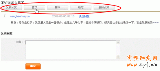 點擊標題對應打開留言后,我們可以查看詳細留言人、留言內容,然后決定是否回復、設定為精華、刪除、鎖定、優秀的留言置頂,方便快捷。哈哈,功能好強大吧,最后點擊確定,一切OK!