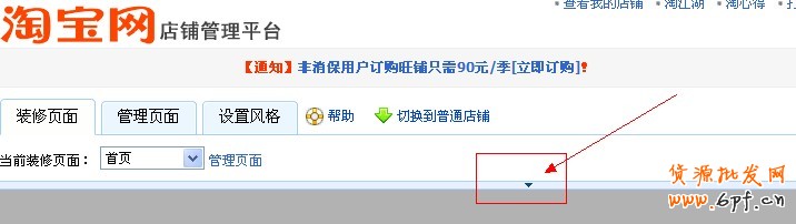 (1)登錄淘寶裝修后臺,點擊如圖箭頭所示小三角。