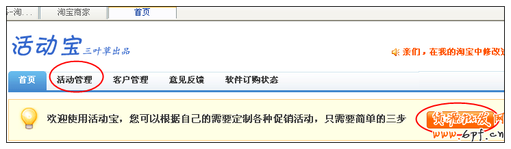 首先請點擊這里訂購<活動寶_精準營銷工具>服務,目前支持免費使用一個月,通過這個服務,你可以個性化地針對商品設置不同折扣,滿足多種活動需求。你可以同時設置多個活動,但每個商品只能參加一個活動哦。