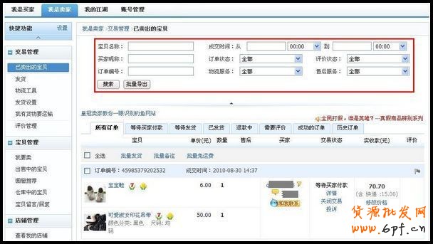 同時(shí)賣家還可以通過輸入具體的搜索條件,來搜索查找相關(guān)的訂單信息。