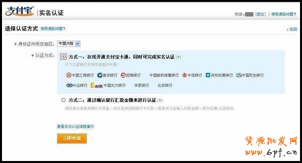 方式一:在線開通支付寶卡通。(我們以方式一為例)