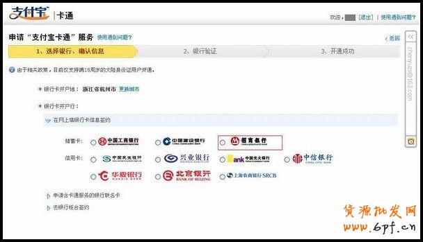 第五步:選擇一家您已經(jīng)開戶的銀行;(我們以招商銀行為例)