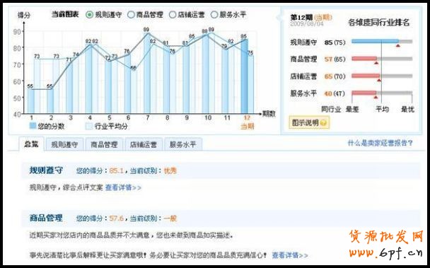 “賣家經(jīng)營報告”是淘寶提供給集市賣家的經(jīng)營管理工具,通過“賣家經(jīng)營報告”,賣家可查看自己獲得的分?jǐn)?shù),從規(guī)則遵守、商品管理、店鋪運(yùn)營、服務(wù)水平四個方面了解自己在近段時間的經(jīng)營狀況,并且可從中獲得經(jīng)營指導(dǎo)!