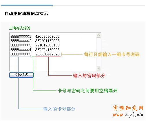 輸入卡號密碼后,請進(jìn)行較驗(yàn)格式;格式不符不能夠上傳商品!