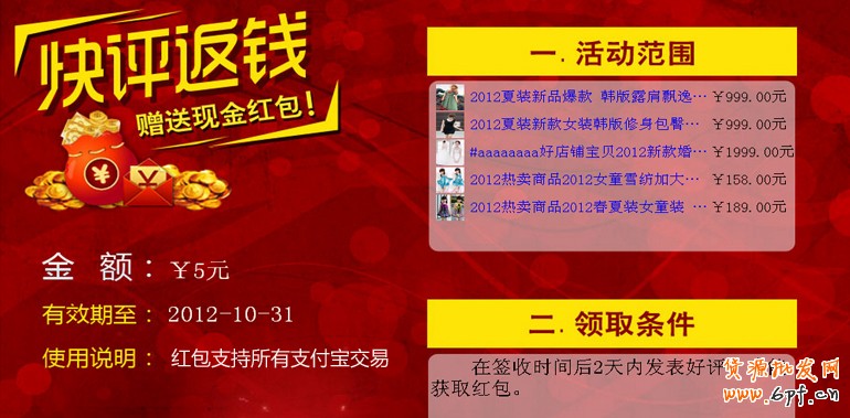 注:紅包可以用于全淘寶網(wǎng)購(gòu)物使用,也就相當(dāng)于返現(xiàn)金。