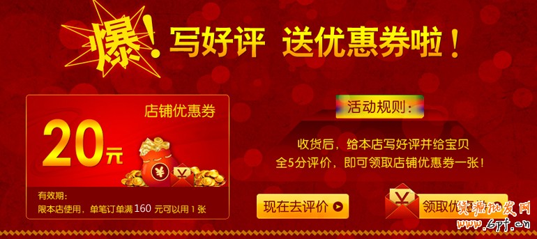 1、好評(píng)送優(yōu)惠劵:送店鋪優(yōu)惠劵的前提是,先要給5分好評(píng)!這樣買家第二次買的時(shí)候就可以用優(yōu)惠劵來抵現(xiàn)金。這樣即提升了好評(píng)度,又提升了回頭率。如下圖:就是一種好評(píng)送優(yōu)惠劵的方法。