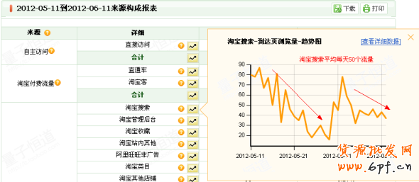 由于該賬戶量子統計里面沒有開通銷售統計模塊,所有我們看不到代理前的寶貝銷售情況,只能通過代理前的流量數據進行分析:
