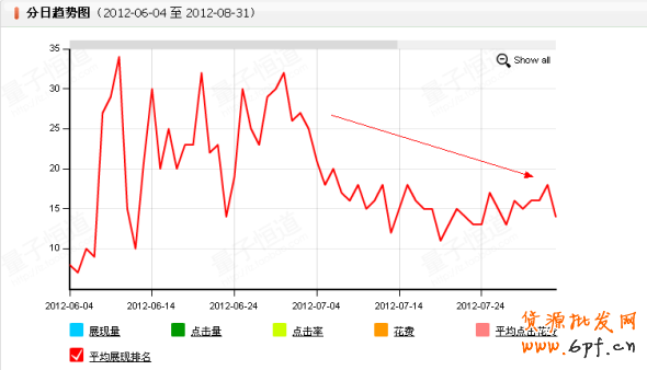 ②點擊率的提升。通過對紅標的測試和更換點擊率低的關鍵詞匹配方式,刪除展現高沒有點擊的關鍵詞,進一步提升CTR