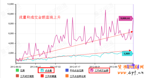 我們根據以上的操作手法,不斷培養寶貝關鍵詞的點擊率和質量得分,分析流量來源發現類目、定向、站外流量等方面都有較好的數據反饋。