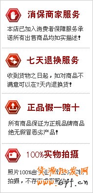 一款適合淘寶消保賣家使用的消保圖片標志,包括七天退換服務 正品假一賠十 100%實物拍攝 這個圖片可以放在你店鋪的左側自定義模塊或者寶貝分類欄里。