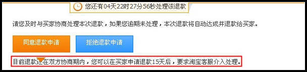 在買家申請(qǐng)退款的15天后如未協(xié)商解決,賣家可以點(diǎn)擊“要求客服介入處理”,淘寶客服會(huì)在7個(gè)工作日內(nèi)介入處理。