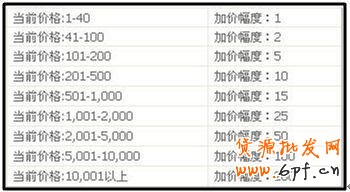 系統(tǒng)自動代理加價幅度表如下:
