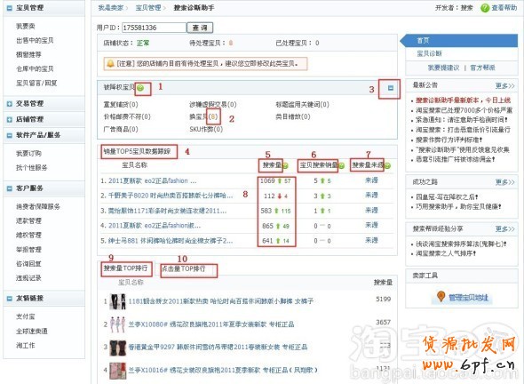 1 我的淘寶——我是賣家——寶貝提醒——搜索診斷助手