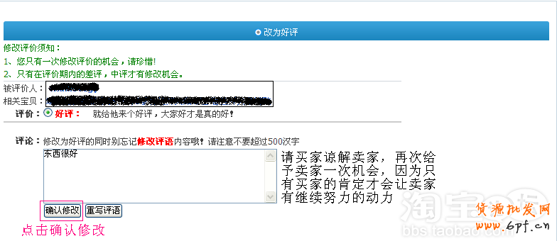 下面附帶新手修改評價的圖文詳解供各位賣家使用: