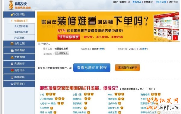 小芳在做這幾項的時候,一直在使用第三方軟件淘店長,可以自動上下架寶貝,自動櫥窗推薦,也可以做寶貝標題優化,大家不妨可以試下,一個軟件,同時解決了這幾個問題。