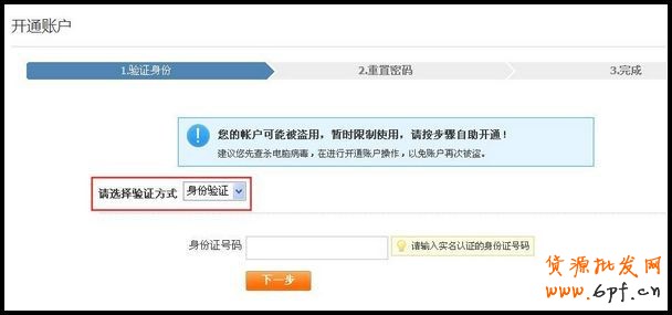 提醒:賬戶被盜開通的驗(yàn)證方式有身份驗(yàn)證、郵箱、密保問題、手機(jī)等方式,為了確保您的賬戶安全,系統(tǒng)會根據(jù)賬戶安全情況給予不同的驗(yàn)證方式。