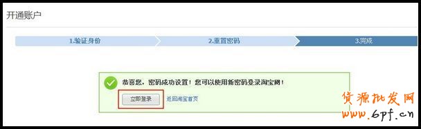 第三步:設(shè)置新的密碼后,點(diǎn)擊“立即登錄”即可開通您的淘寶賬戶。