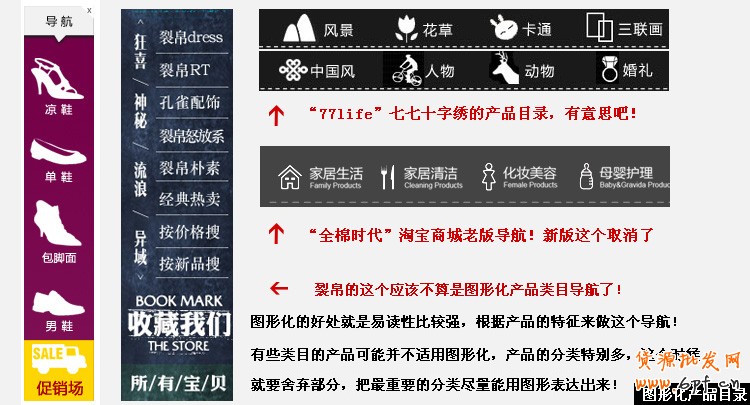 b 圖形化的產品類目導航放在首頁懸浮側邊,或者副導航下面都可以讓新顧客非常簡潔的明了的了解店內產品的目錄!
