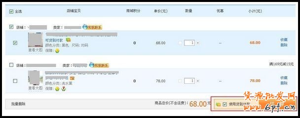 另使用購物車也可購買支持貨到付款的寶貝,步驟同“加入購物車”后再“立刻購買”。