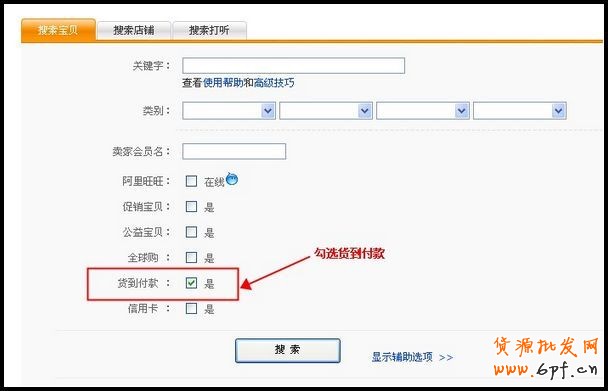 第一步:在淘寶網中尋找支持貨到付款的寶貝,可在高級搜索內查詢。
