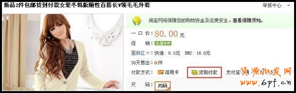 判斷商品是否支持貨到付款的具體方法如下:如果商品頁面付款方式一欄有貨到付款標志(如圖),就說明該商品是支持貨到付款的(如何找到支持貨到付款的寶貝?)。