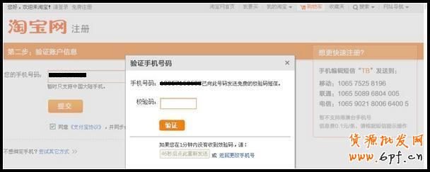 填寫手機號碼,必須是未被注冊使用的手機號。 進入該頁面,說明之前提交的注冊信息已成功,此時您已有了一個未激活的淘寶賬戶,需要輸入手機收到的校驗碼進行激活,若您不小心把該頁面關(guān)閉了,不用著急,進入登錄頁面輸入賬戶名和密碼,點擊“登錄”該頁面又會出現(xiàn)。
