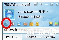 將剛創(chuàng)建好的子帳號caishuhua2010:貝貝登錄阿里旺旺后,就可以在主界面的左上角找到E客服的圖標了哦!