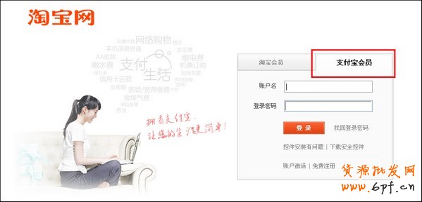2、在淘寶賬戶登錄頁面,點擊【支付寶會員】,輸入賬戶名和登錄密碼;