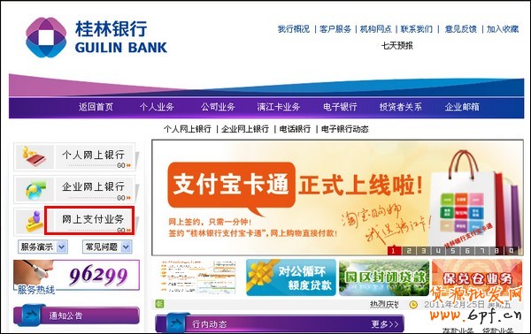 1、進入桂林銀行 網上銀行,點擊“網上支付業務”