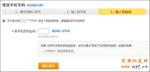 5、輸入新手機的校驗碼,即可修改手機號碼。