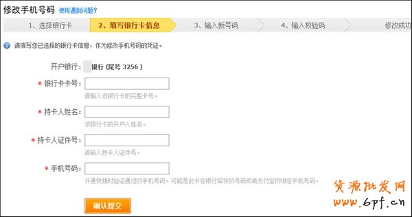 方式三:通過快捷支付銀行卡修改手機號碼