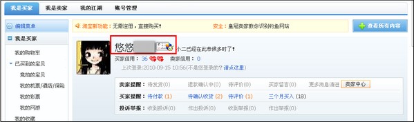 3、在頁面左上方可以看到此支付寶賬戶對應的淘寶會員名,也可以點擊【我的淘寶】查看此淘寶會員名的詳細信息;