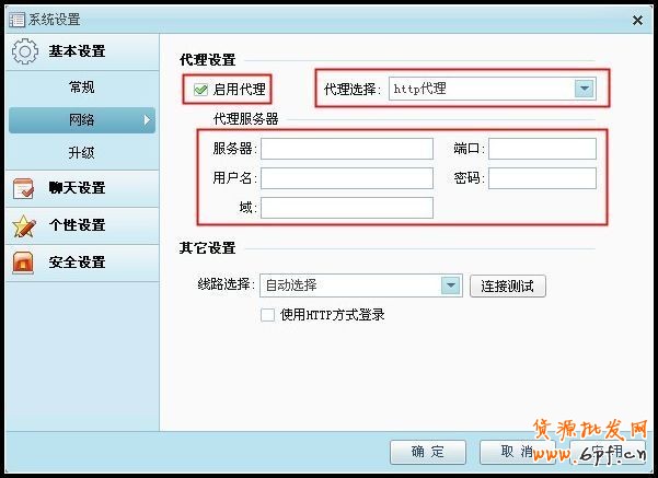 可打開阿里旺旺,在“系統(tǒng)設(shè)置”-“基本設(shè)置”-“網(wǎng)絡(luò)”中,首先勾選“啟用代理”,配置參數(shù)即可,如圖: