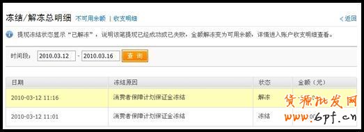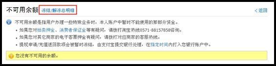 第三步:在“不可用余額”頁面,點擊“凍結/解凍總明細”